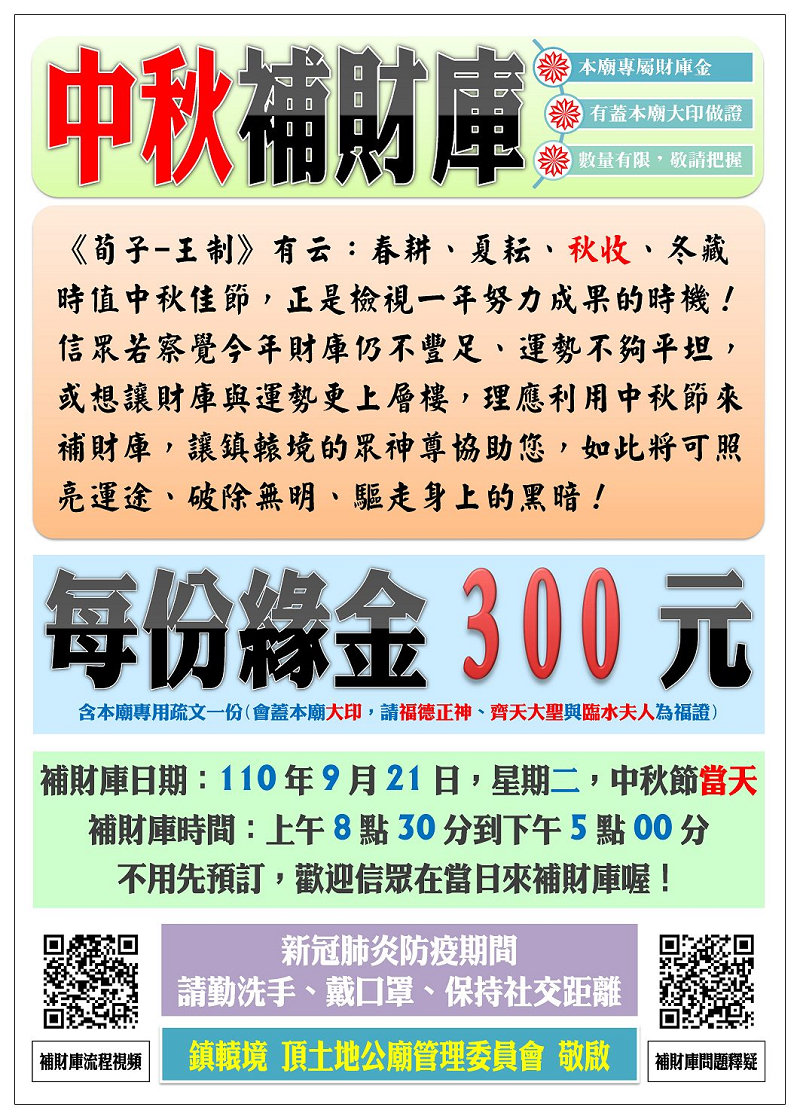 辛丑年(2021)中秋節助運勢與補財庫活動