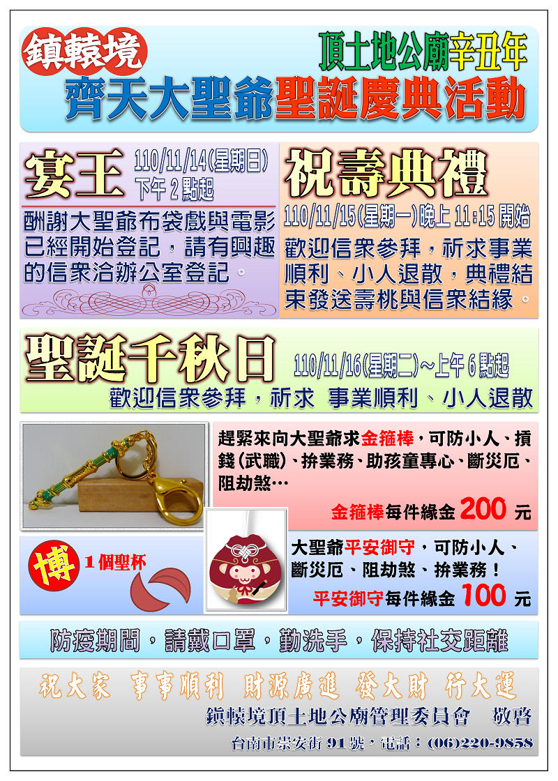 辛丑年(2021)齊天大聖爺聖誕慶典活動